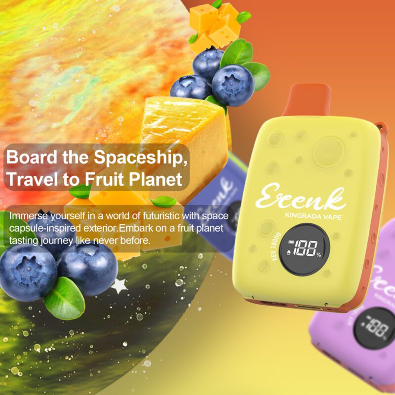 Disposable Vape Pens 18,000 Puffs Rechargeable E Cigarette Prefilled Fruit Flavours Display Screen Vape Pen Starter Kit Adjustable Smoke Vapes Pod No Nicotine Attached Lanyard (Blueberry Cheesecake)