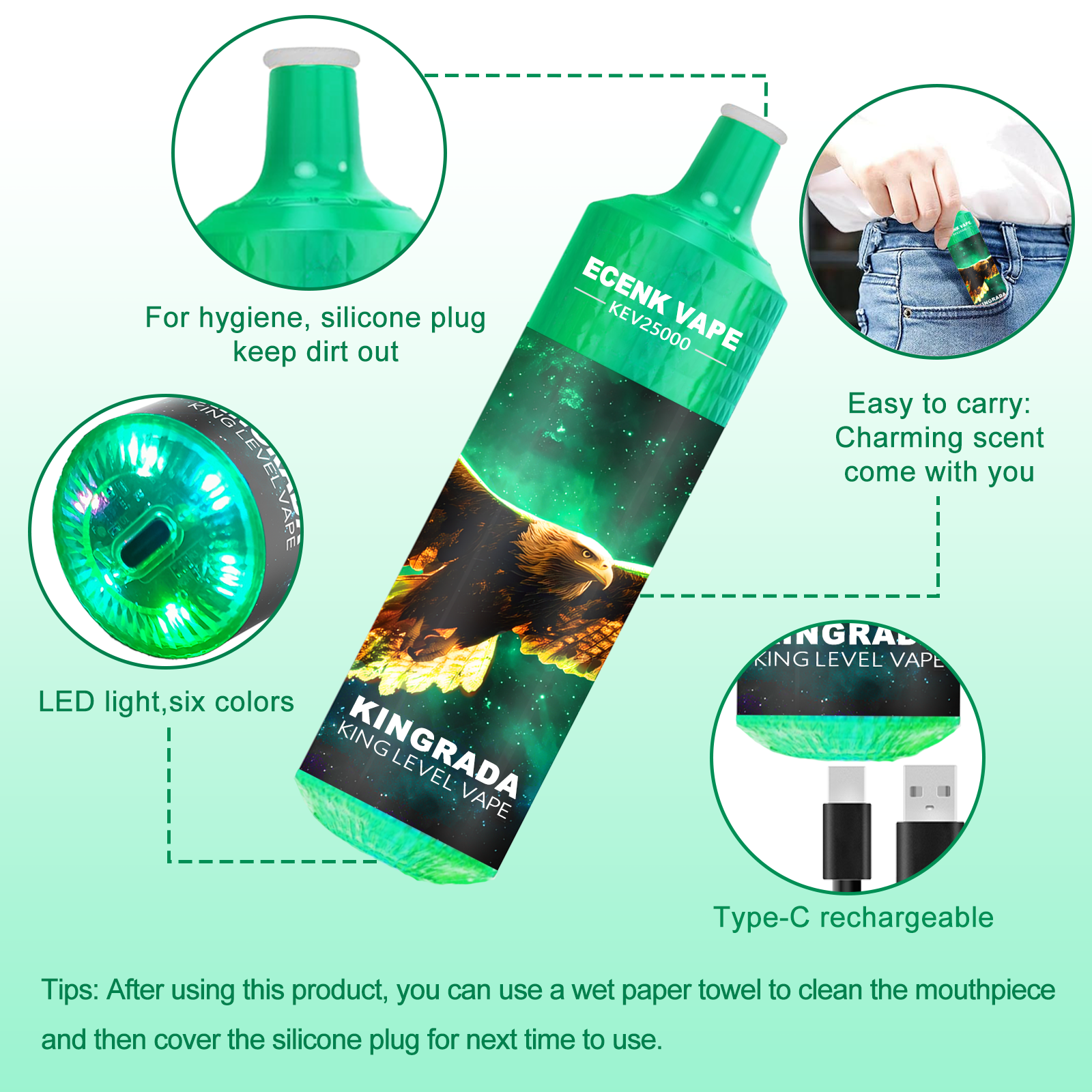 Ecenk disposable e-cigarettes have a large capacity and high performance. Although disposable, they can be recharged repeatedly. With a powerful 950mAh battery, they offer long-lasting use and are convenient to carry.