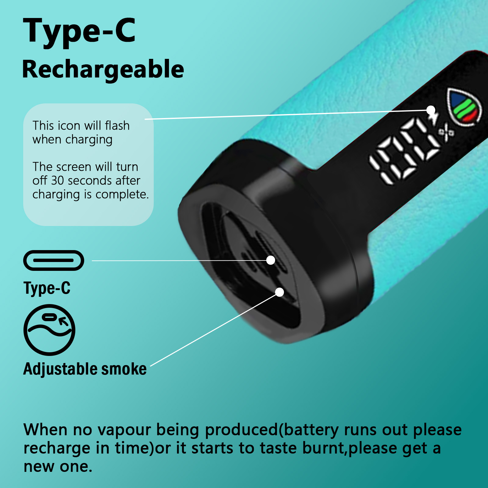 Equipped with Type-C rapid charging, the device can be ready to use within minutes. Therefore, you can enjoy your vape without waiting for long charging times.