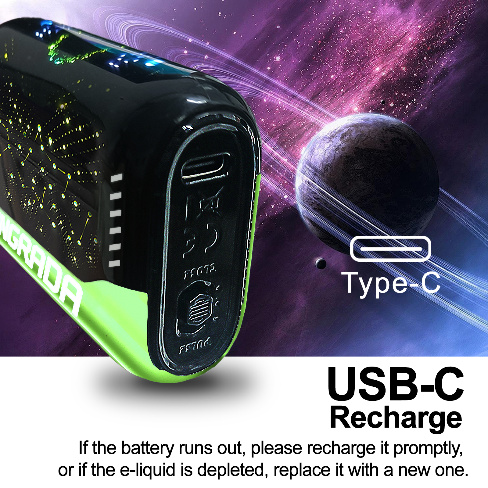 Equipped with Type-C rapid charging, it is fully charged in approximately 50 minutes. Therefore, you can start vaping quickly without waiting.