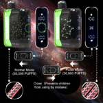 The device features a soft-touch mouthpiece and a mirror-like 3D display. As a result, you can easily check remaining battery, liquid level, and suction mode.
