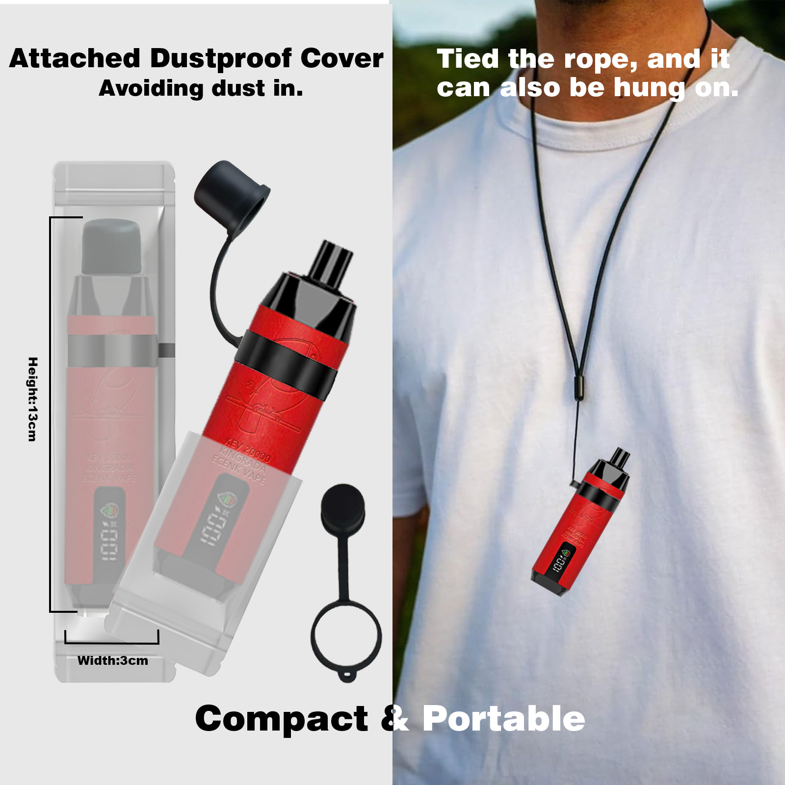 The silicone mouthpiece comes with a separate dustproof cap for hygiene and safety. Moreover, the cap includes a strap hole, allowing you to attach it to a strap and hang it from your neck for easy portability.