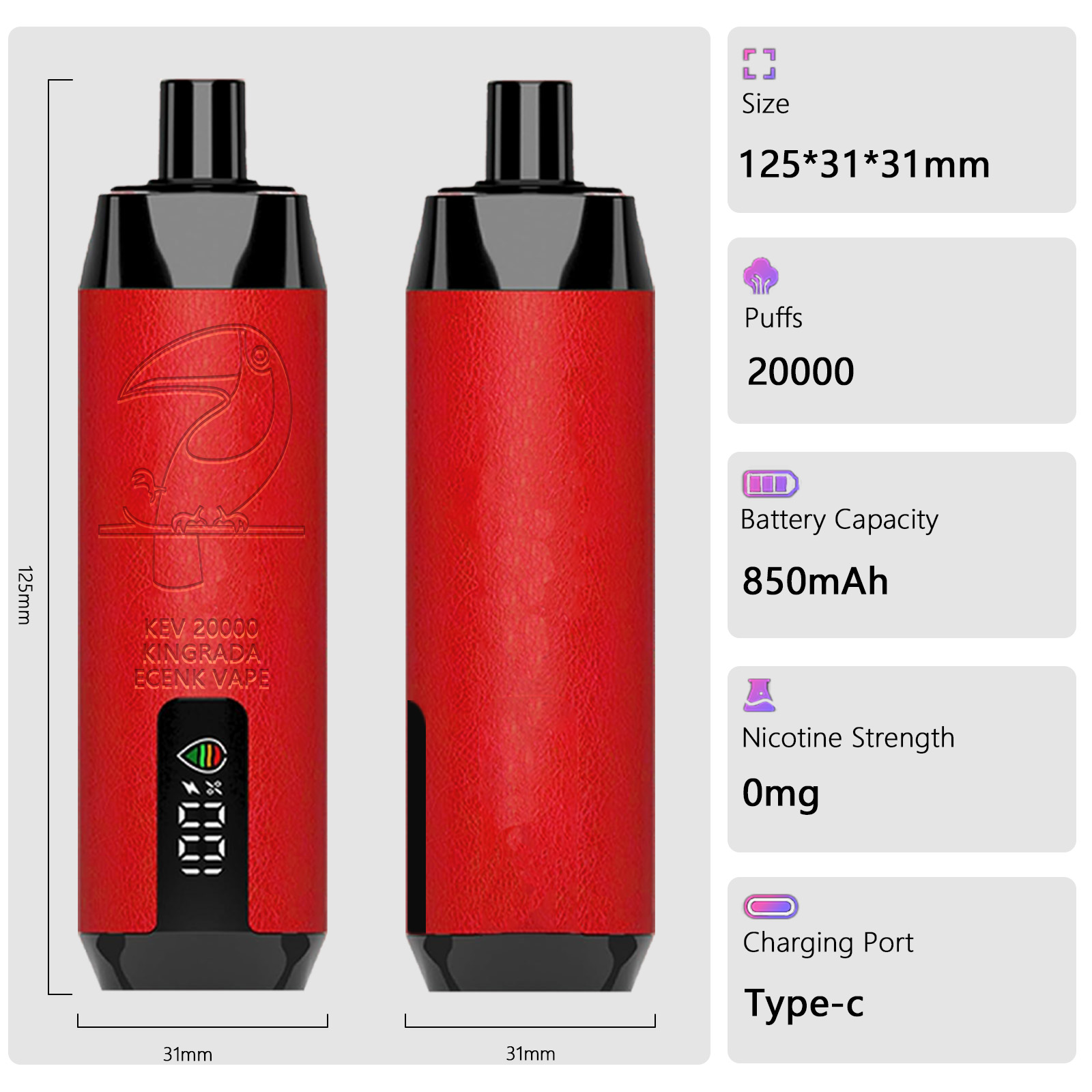 KINGRADA VAPE disposable e-cigarettes are available in 10 delicious fruit flavors. Moreover, the e-liquid is made from natural ingredients, providing high-quality flavors, rich aromas, and even thicker vapor. As a result, every puff delivers an enjoyable and satisfying vaping experience.