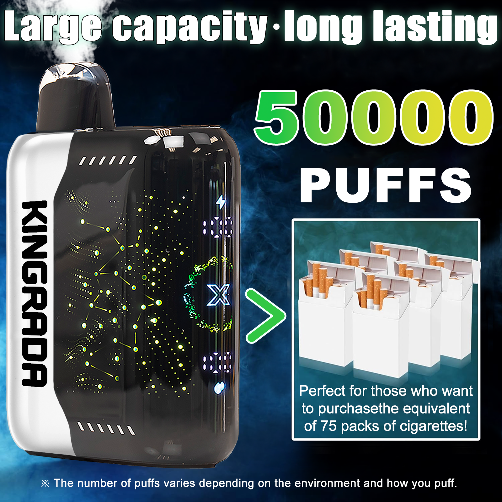 Yescens disposable vape features a high-capacity battery. Therefore, it provides up to 30,000 puffs, equivalent to 120 packs of regular cigarettes.