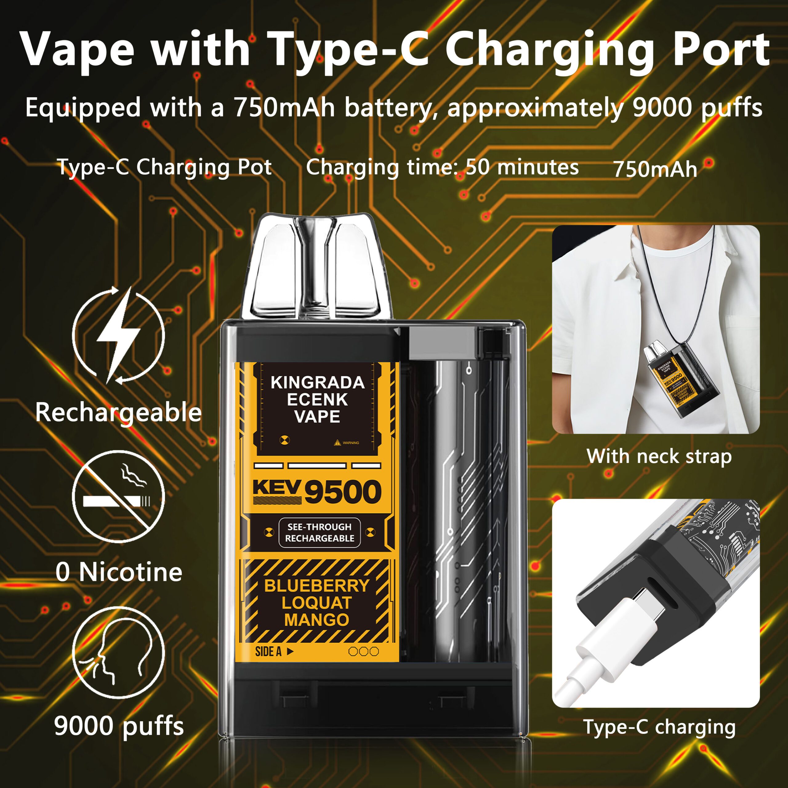 We include a neck strap to enhance the user experience. Thus, you can carry your e-cigarette anywhere and prevent it from being lost. Consequently, you can enjoy vaping in various locations (subject to local legislation).