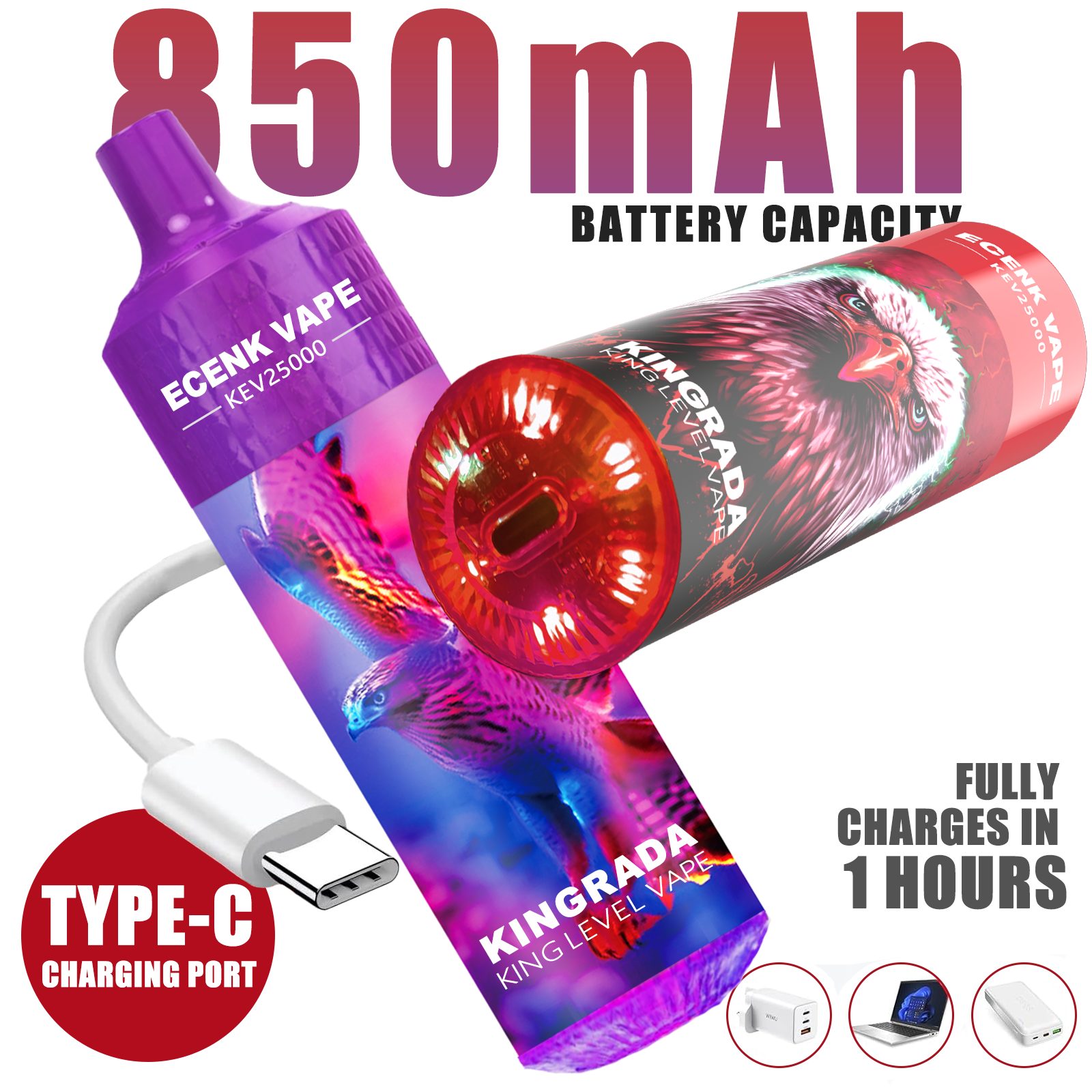 The device features a Type-C charging port at the bottom. A full charge takes about 40 minutes. Although disposable, it can be recharged multiple times. Thus, you can enjoy the full flavor of your chosen taste until the very end.