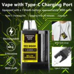 Disposable Vape Pens 10,000 Puffs Bar E Cigarette Starter Kit Prefilled Vape Juice, No Nicotine, Attached Lanyard (Menthol)