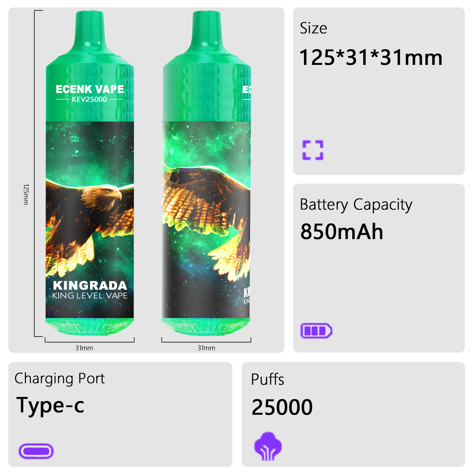 Ecenk disposable e-cigarettes have a large capacity and high performance. Although disposable, they can be recharged repeatedly. With a powerful 950mAh battery, they offer long-lasting use and are convenient to carry.