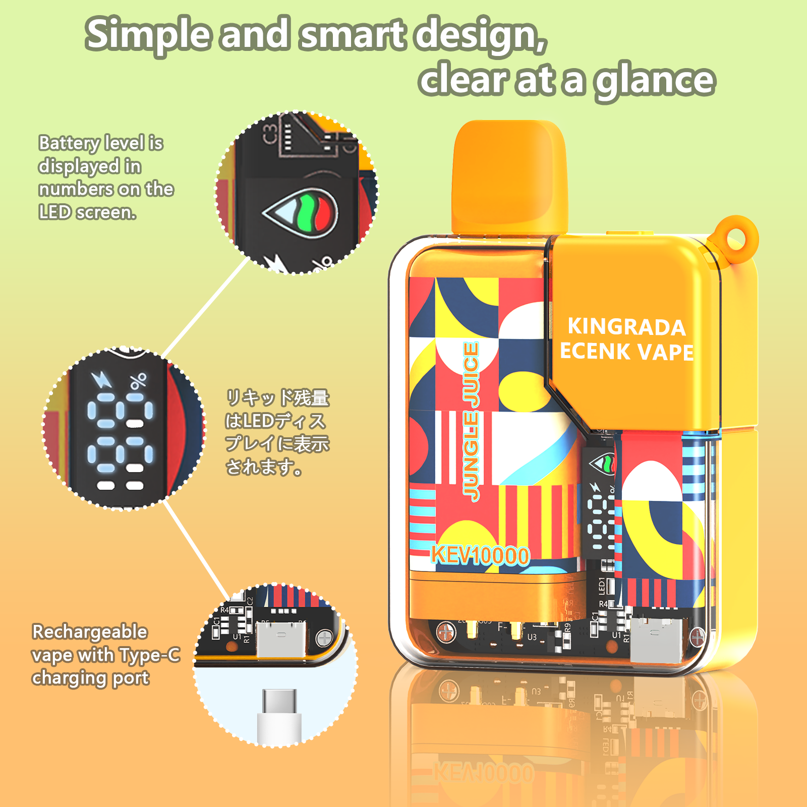 Home 13 Pro disposable vape Disposable Vape Pens 10,000 Puffs Starter Kit Rechargeable Vape Pen Prefilled Fruit Flavours Pod E Cigarette No Nicotine LED Display Screen Adjustable Smoke(Jungle Juice)