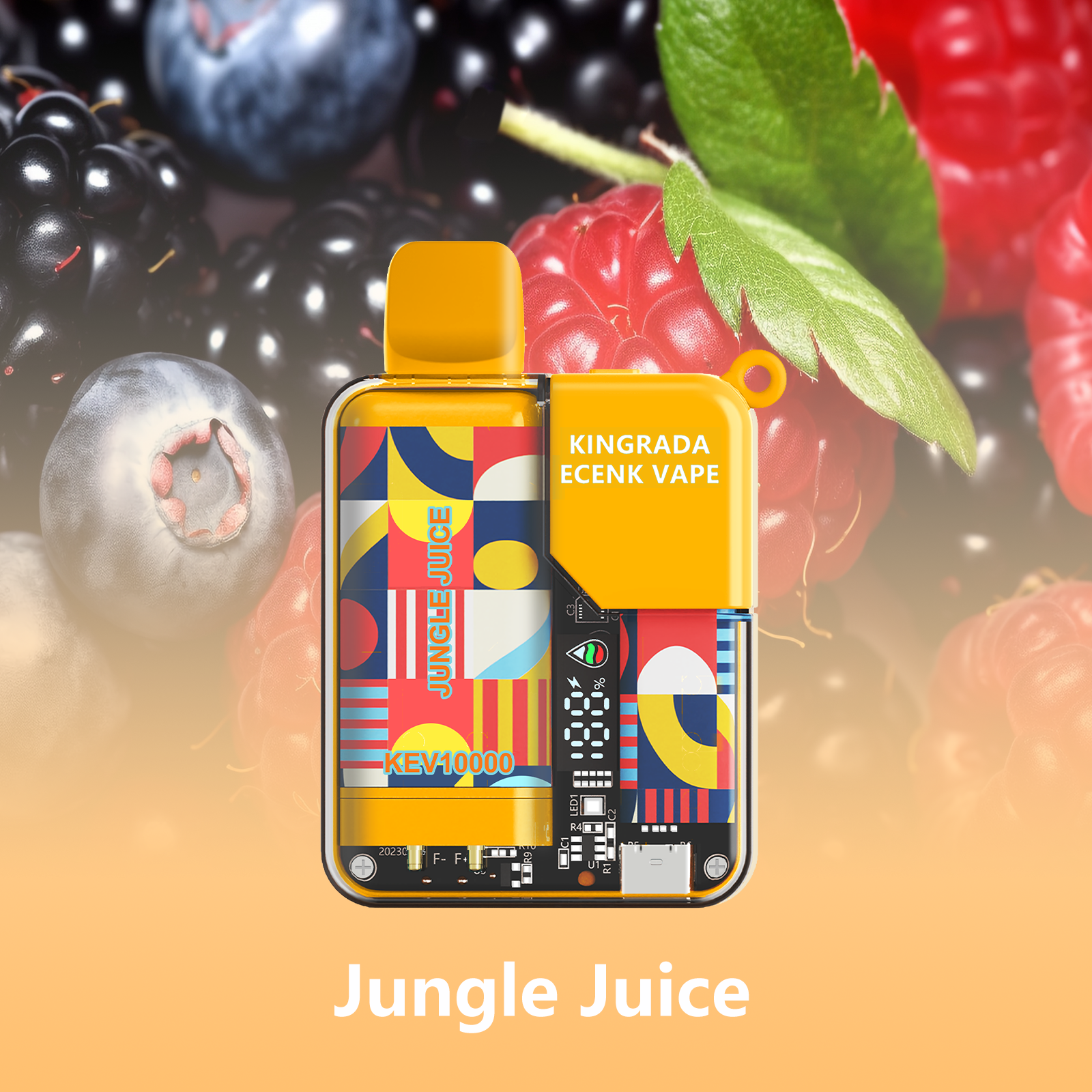 Disposable Vape Pens 10,000 Puffs Starter Kit Rechargeable Vape Pen Prefilled Fruit Flavours Pod E Cigarette No Nicotine LED Display Screen Adjustable Smoke(Jungle Juice)