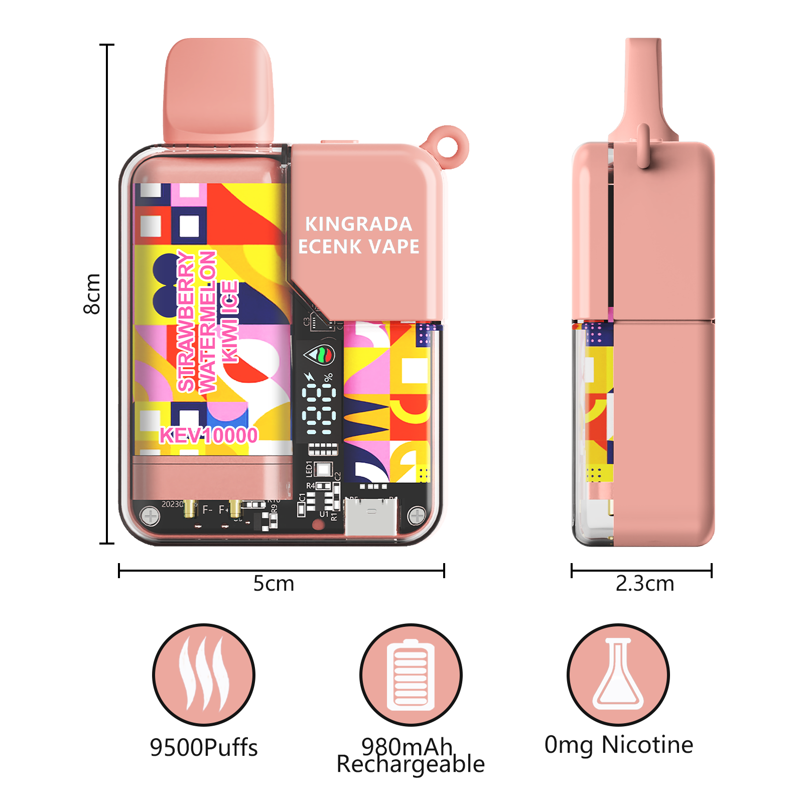 Measuring 5cm x 8cm x 2.3cm and weighing only 90g, this vape is lightweight and portable. It fits easily in your pocket or bag. Consequently, you can enjoy vaping anywhere without carrying bulky devices.