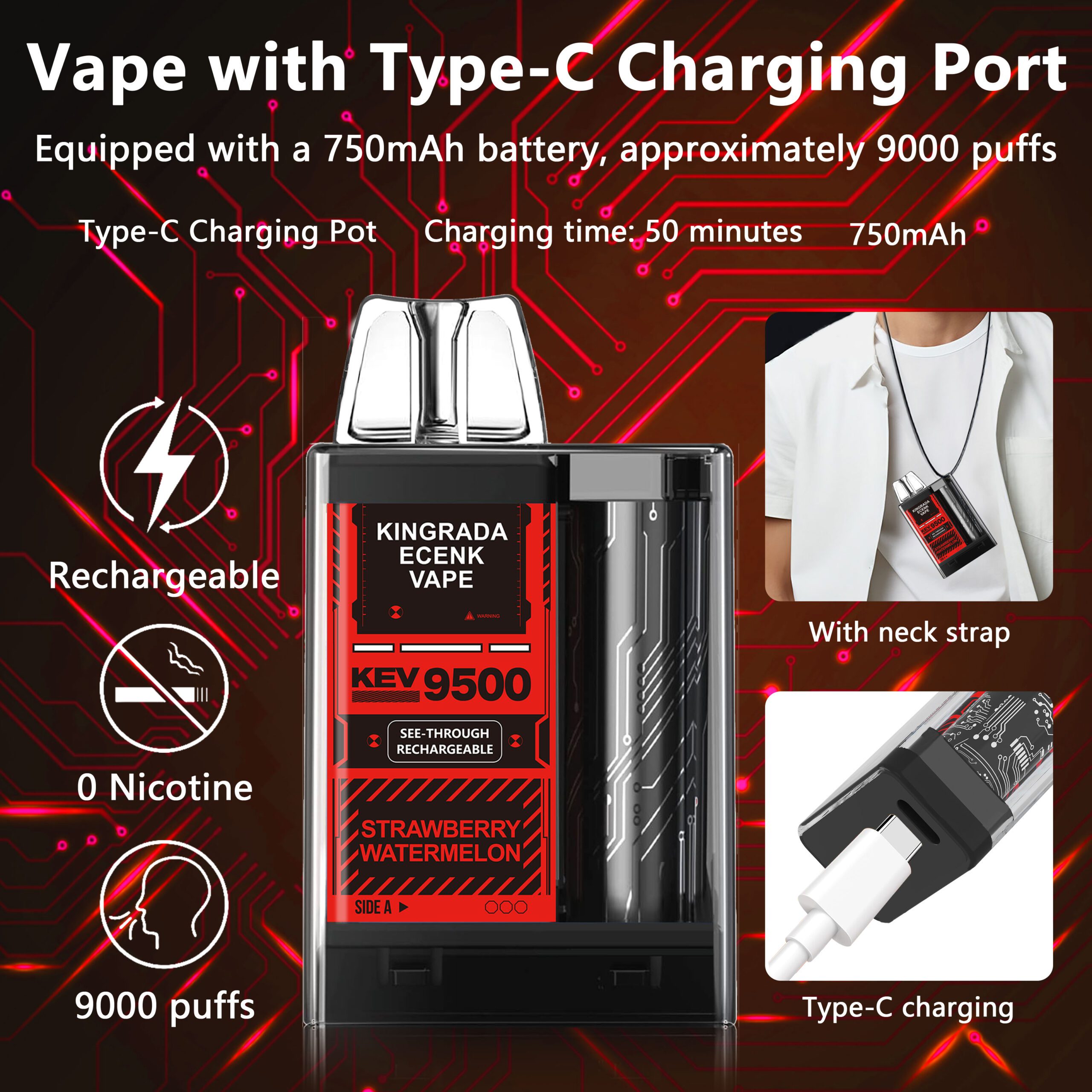 We include a neck strap to enhance the user experience. Thus, you can carry your e-cigarette anywhere and prevent it from being lost. Consequently, you can enjoy vaping in various locations (subject to local legislation).