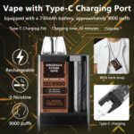 This e-cigarette has a 750 mAh lithium-ion battery. Although disposable, you can recharge it multiple times. We test every device before shipping. On average, you can enjoy around 7,500 puffs, making it ideal for home use or on the go (subject to local legislation).